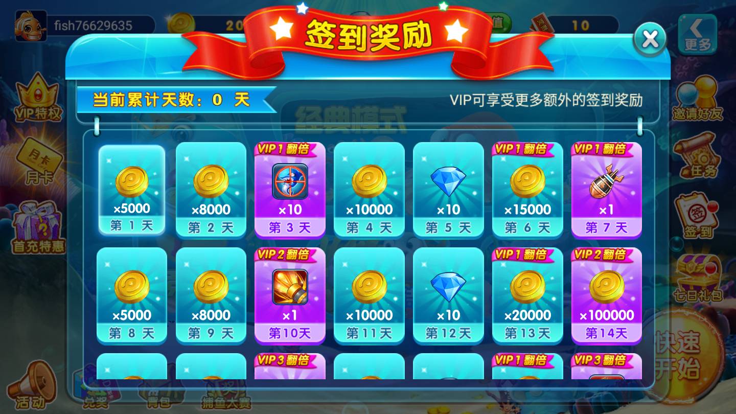 3.多人联机模式:游戏加入了多人联机模式,玩家可以和其他玩家一起组队捕鱼,感受不同寻常的游戏乐趣。