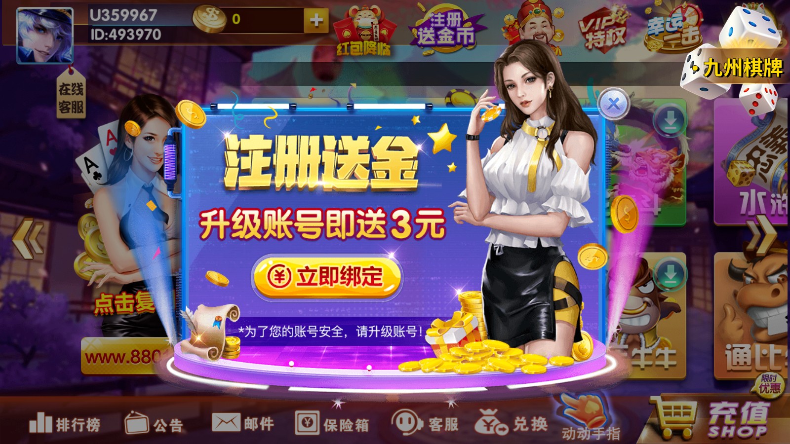 以上就是这次爲大家带来的相关九州棋牌的介绍,喜欢的朋友请关注阿里下载站这款手游总体来说并没有值得吐槽的,反正不用花钱就能玩,感兴趣的都可以玩玩。如果觉得还不错的话也请点个赞,万分感谢!