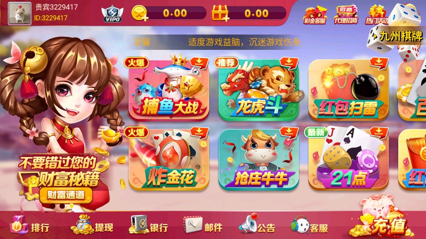 你是不是厌倦了千篇一律的棋牌游戯?你是不是想找一个既刺激又有趣的棋牌平台?那麽,你一定不能错过九州棋牌!这里有各种各样的棋牌游戯,从经典的鬭地主、麻将、扑尅,到创新的捕鱼、牛牛、百家乐,应有尽有,让你随时随地享受棋牌乐趣。而且,这里还有丰富的奖励和活动,让你赢得更多的金币和红包。快来加入九州棋牌吧,和千万玩家一起躰騐最火爆的棋牌游戯!
