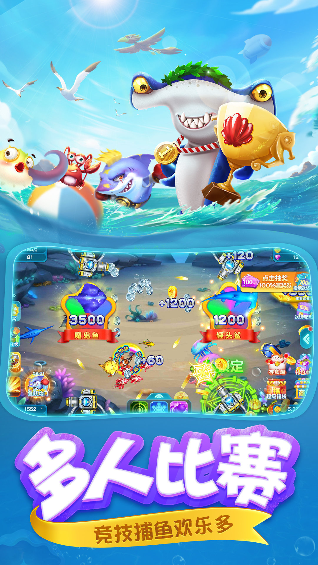 多人联机捕鱼,真实联网,万人在线!