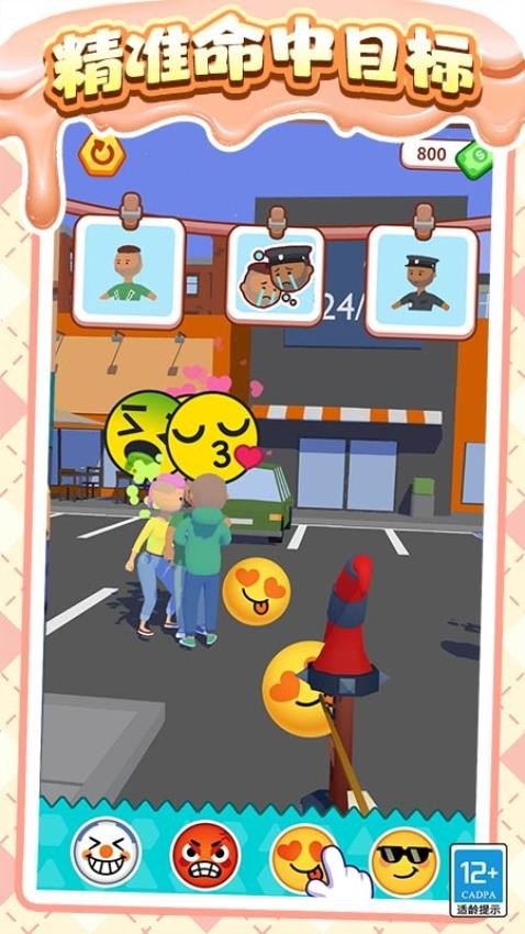 2、发射表情包击中目标:通过精准的操作,将表情包发射出去,击中目标人物,使其做出相应的表情,完成关卡任务。