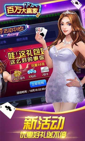 百万大赢家最新版是一款集合了众多经典与创新棋牌玩法的综合性游戏平台。它不仅继承了传统棋牌游戏的精髓,还融入了现代科技与精美设计,致力于为玩家带来极致的休闲娱乐体验。无论是斗地主、麻将、象棋还是扑克等,各种热门棋牌游戏应有尽有,满足玩家的多样化需求。
