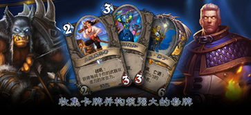 玩家除了能够与电脑对战磨练牌技,与战网好友相互切磋之外,玩家之间还可以通过另外两种极具挑战的游戏模式进行互动。经典的“对战模式”让玩家们进行正面对抗,从而提高奖章排名,获得赢取扩展包的机会。作为另一种全然不同的游戏模式,“打造模式”让玩家从若干随机卡牌中根据自身的策略选取卡牌,运用打造出来的全新套牌与其他选手对抗。除了通过对战赢得新的卡牌,玩家还能够通过购买扩展包来充实自己的卡牌收藏,或是将已有的卡牌进行消解,用所得的材料制造出新的卡牌。